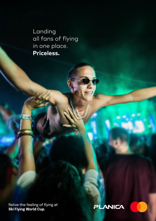 There is a universal moment we all share, the moment when we feel as if we are flying. Sometimes it is the leap into a pool on a summer afternoon, the rush of being lifted above the crowd at a concert, or the childlike joy of being carried high into the air by your parents. These fleeting moments awaken something deep within us. They remind us of freedom, of thrill, of the weightlessness we all secretly chase. Flying is not just a physical act. It is an emotion. A memory. A desire we carry with us. And in that sense, everyone is a fan of flying. The World Ski Flying Cup in Planica is where this shared passion comes to life. It is not just an event, it is a gathering place for everyone who has ever dreamed of flight. Here the impossible becomes real as athletes soar hundreds of meters through the air with nothing but speed, courage and a thin layer of fabric between them and the ground. It is not only about watching ski jumpers. It is about reliving that familiar rush, the sensation that makes you hold your breath, lift your gaze and feel the ground slip away beneath you. In the visual design we wanted to bring this idea to life in a way that goes beyond the ski hill. That is why we chose to show people in everyday situations that at first glance have nothing to do with ski flying. These are moments when people are not literally flying, but the feeling comes close. What makes them even more powerful is that their bodies naturally fall into shapes and poses similar to those of ski flyers in the air or during training. This visual connection ties everyday experiences to the world of ski flying. It shows that the sensation of flight is not reserved for athletes alone but is something we all recognize and can relate to through everyday life.