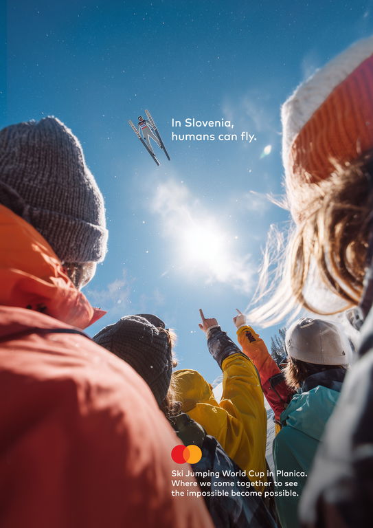 Humans can walk, run, and swim. But we can’t fly. Or so we’ve always believed. Every winter, in a valley in Slovenia called Planica, that belief is beautifully broken. During the Ski Jumping World Cup, athletes launch themselves off the edge of gravity, soaring through the air for five to seven seconds, covering the length of a football field, suspended between earth and sky. It’s not a trick or a fantasy. It’s real and it’s breathtaking to witness. It looks impossible and it feels like magic. This is ski flying, one of the rare sports where physics, courage, and elegance collide to create something otherworldly. A moment so fragile and fleeting, it seems to stop time. But the real wonder isn’t just in the flight. It’s in what it awakens in us. Because as the jumper rises, so does the crowd. Tens of thousands of people from all over the world, different languages, faces, stories, lift their eyes in unison. For a few seconds, we’re all part of something bigger than ourselves. Our print ad celebrates this shared human moment. It captures the exact instant of takeoff -when the body breaks free from gravity and everything else fades. The camera doesn’t focus on just the athlete, but the perspective of the many: families clutching each other, children wide-eyed, friends cheering, strangers connecting without a word. In a divided world, Planica offers a rare kind of unity: one born from awe, from motion, from flight. Because when a human flies, we all feel it. And for a moment, we all believe we can too.