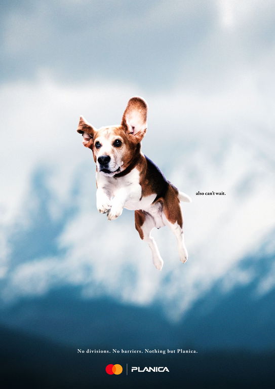 We decided to be very serious about breaking the good-student rules. A 'right answer' alone does not inspire people. Have you ever done your homework just because your mom said so? At least, I haven't. If correct statements could change behavior, AI would write every creative message, and conflicts would have ended long ago. Therefore, the straight statement 'Planica is more than a sports event and welcomes everyone' won't change people's behavior. Instead, we looked at a what-if world. What if a world where everyone belongs had already been achieved? Then, even animals would look forward to Planica! By showing animals excited about Planica, which goes beyond every division and barrier, viewers can feel that they are welcome too. It may look playful, but it's not just for fun. Humor is a tool to help us reach our goal. This poster series says, ''Here is a place anyone can enjoy, with no divisions and no barriers.'' That's why we use two posters with clear taglines: Poster 1 (Cat): “(Cat) also can’t wait. Let’s jump into fun for everyone.” Poster 2 (Dog): “(Dog) also can’t wait. No divisions. No barriers. Nothing but Planica.' In this series, the visuals and taglines help young people understand that everyone belongs in Planica. This series also hacks everyday life. After seeing it, every time you see a dog bounce or a cat jump down from a wall, you’ll remember Planica. The idea can easily extend to social media. With the hashtag #EvenTheAnimalsBelong, you can post short clips of animals jumping for a chance to be invited to Planica. Animals are loved worldwide, so anyone can feel they can join.