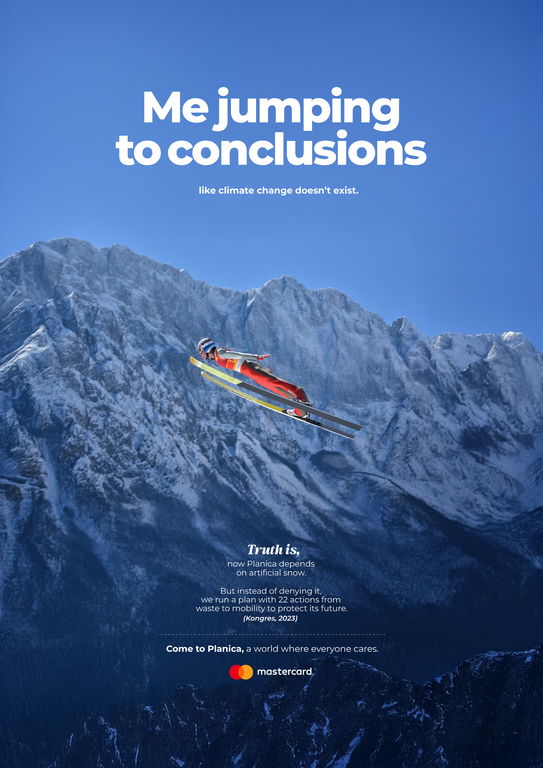Everyone loves memes. They’re today’s language. Fast, ironic, and viral. They make us laugh, but they also have the power to expose uncomfortable truths. That’s why they resonate so strongly with Gen Z, a generation that calls out clichés, rejects denial, and trusts brands that reflect their values. And honestly, we feel the same way they do. In 2025, it’s almost unbelievable that people still deny climate change. It’s absurd, even shocking, to witness. In the trend “Me jumping to conclusions” we saw more than a joke. We saw a cultural code waiting to be twisted into meaning. From silly assumptions to serious awareness, from laughter to genuine reflection. By hijacking this meme, we wanted to position Planica as more than a sporting stage, but as a symbol of belonging. People, especially young audiences, want to feel part of something, a movement, a community, even as consumers. They want brands to stop being passive and start showing proof. That’s why we wanted to show Slovenia and Planica as the safe space they are, where care extends to everyone and to every living being. Because that’s not sponsorship. That’s connection. That’s Priceless. And yeees, in a world where memes shape conversations and climate change shapes our future, the role of brands is no longer to entertain from the sidelines, but to lead with truth. This bold idea makes Planica a global symbol that transcends sport: an invitation for every generation to fly higher, together, in a place where everyone truly belongs.