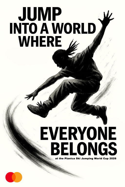“Priceless Strokes” visually invites new generations to experience more than just a sports event. Each poster uses minimalistic ink painting style and bold typography to tell a story of courage, movement, and belonging, reflecting on Mastercard’s values of inclusion, accessibility, sustainability, and shared experience. The first poster captures Konrad Schumann’s historic leap over barbed wire in 1961, symbolizing the universal pursuit of freedom and the breaking of barriers. The second features a ski jumper soaring, their flight connecting generations and cultures, and embodying the collective energy of the World Cup. The third poster brings the narrative into the present, featuring an urban street dancer mid-leap, which is an expression of individuality, diversity, and the modern spirit of belonging. The dancer’s movement echoes the courage and aspiration of the previous leaps, now set in a contemporary, urban context that resonates with sneaker culture and the Y2K aesthetic. Millennials, who lived through its original rise, feel a deep emotional tie, while Gen Z embraces it as part of their aesthetic identity. The black-and-white palette and strong contrast, inspired by the iconic Jumpman logo, create a visual bridge between past and present. The visual style is intentionally minimalistic. In a world filled with constant digital stimuli and visual overload, simplicity offers a moment of clarity and emotional resonance. The tagline, “Jump into a World Where Everyone Belongs,” guides the viewer’s eye and reinforces the emotional tone. This series positions the event as a place where technology connects, the planet matters, and everyone is welcome, inviting young, socially conscious audiences to stroke to something truly Priceless.