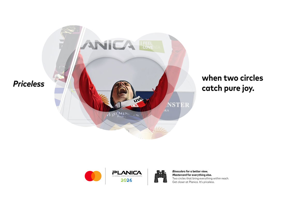 INSIGHT Ski jumping is one of the few sports where fans routinely watch through binoculars. From most spots on the hill, you don’t see the full arc: if you’re lucky you catch the take-off or the landing, but rarely the whole flight. Fans bridge that gap in a simple way with two circles of glass that bring the action closer. Those two circles are a powerful, shared behavior in Planica ...and they echo another pair of circles fans already know: Mastercard. IDEA Turn the crowd’s habit into a brandable system: The Two-Circle View. We make binoculars the “language” of the print/poster campaign, using their shape to dramatize how ski jumping is best experienced together. The line between product truth and brand truth is clear: “Two circles of binoculars to see it all. Two circles of Mastercard to pay for it all.” That thought is captured in a simple footer that repeats across the series: Binoculars for a better view. Mastercard for everything else. Two circles that bring everything within reach. Get closer at Planica. It’s priceless. EXECUTION A trilogy of posters mirrors the narrative of a jump: — anticipation on the inrun (“When anticipation fills every lens”), — flight (“When all eyes follow one flight”), — celebration (“When two circles catch pure joy”). Each visual places the key action inside a soft binocular mask, surrounded by a subtle field of overlapping “lenses” (binocular masks) to suggest a crowd focusing together. Note: The images in “Flight” and “Celebration” are real and taken from the FIS Ski Flying World Cup website (planica2023.si). The image in “Anticipation” is AI-generated due to a lack of suitable photos on the organizer’s site. SUMMARY The Two-Circle View turns a distinct fan behavior into an emotional, modern platform that belongs to Planica—and, naturally, to Mastercard.