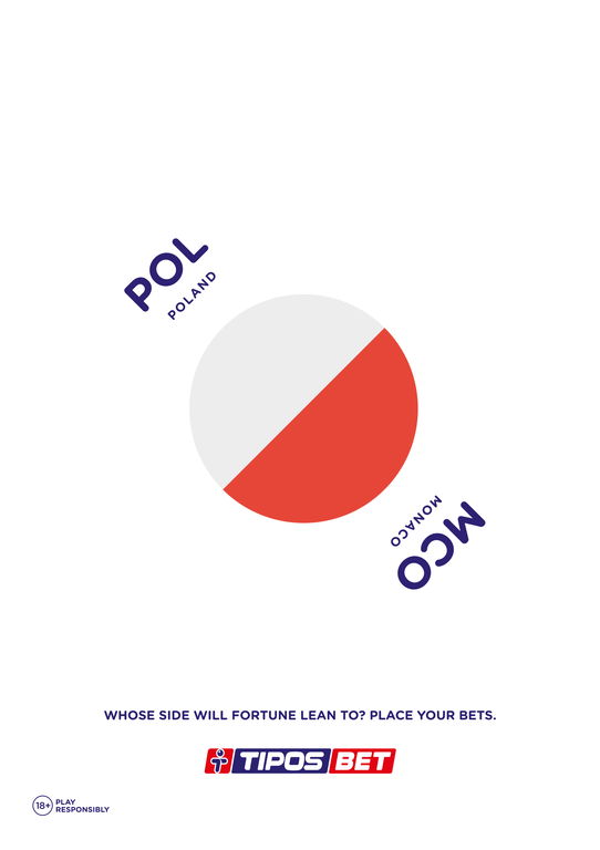 To promote TIPOSBET sports betting, we used an interesting fact about country flags: some of them look very similar. All it takes is to rotate them, and suddenly they become the flag of another country. We used this insight to illustrate how luck in a match can also shift — sometimes taking one side, and other times the other.
