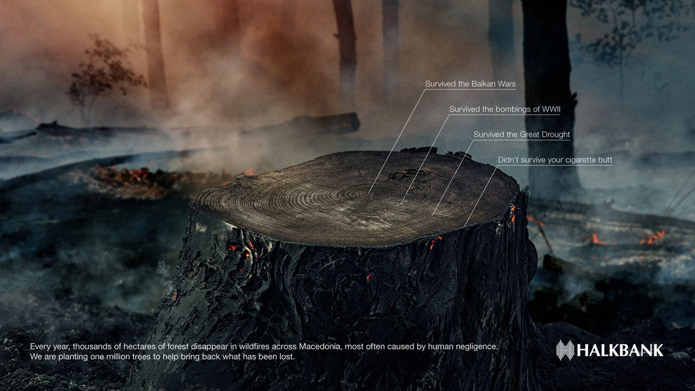 In the last few years, centuries old forests in Macedonia have burned down in wildfires. Trees that survived droughts, lightning strikes, bombings and the devastation of wars could not survive our neglect. With just a small careless act, like a cigarette butt or a spark from a barbecue, we lose what has taken centuries to grow. We created this campaign to highlight how easily our actions can destroy entire forests, and to show our commitment by planting one million trees to help bring back what has been lost.