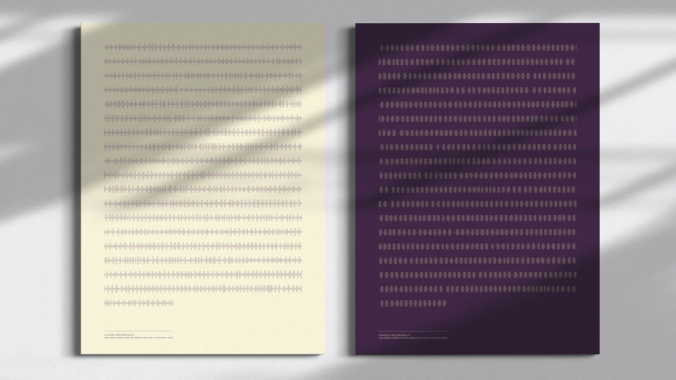 To mark the 10-year anniversary of GR Design magazine, which celebrates and documents Greek creativity, we designed a two-poster series that embodies Greek design through the sounds of summer. One poster captures the cicada’s call during the day, the other the cricket’s song at night—each based on a 5-minute recording, translated into 5,413 waveform bars. Together, the 10-minute duration subtly references the magazine’s 10-year milestone. Through minimalism, rhythm, and natural symbolism, the posters pay tribute to Greek identity—merging visual design, data, and memory into a single sensory homage.