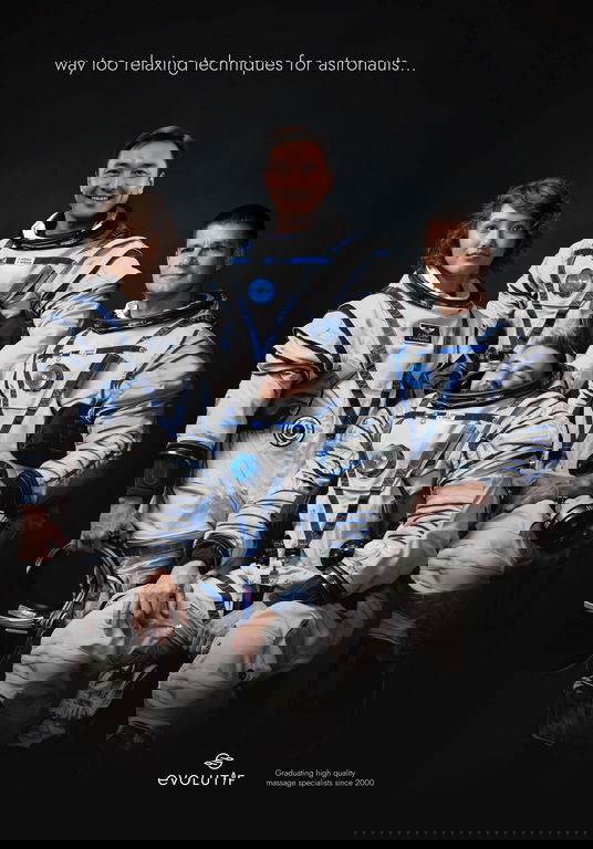 The idea was to celebrate Cosmonautics Day by highlighting beauty and wellness massage specialists results that might be not fit space program requirements but still valuable and mean. As much as astronauts care about space — our specialists restore strenght on Earth! In our work we showed such monumental spacesuit, that ready for space gravity while crew member looks like failed because of over-relaxing condition.